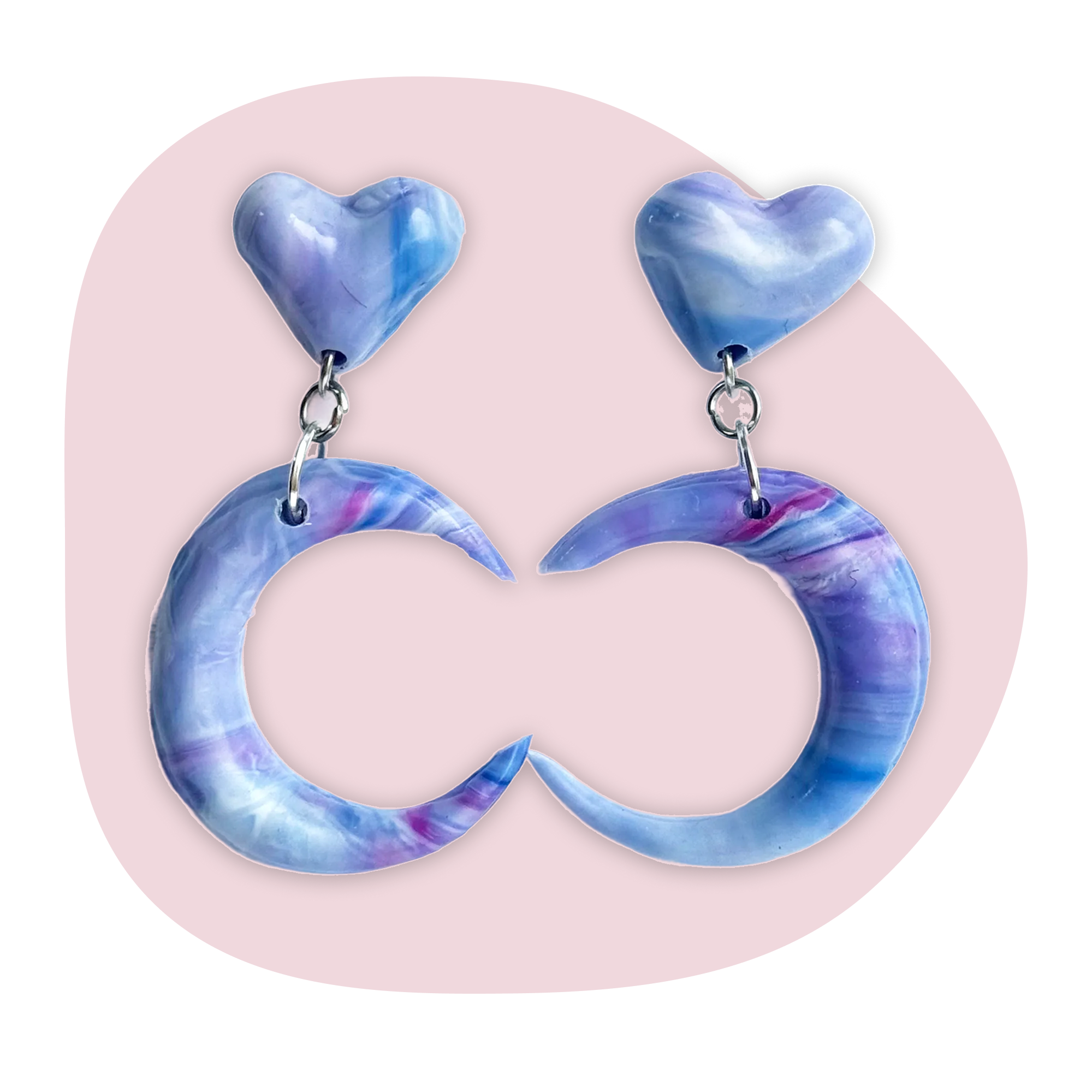 Сережки з переробленого пластику. «Крапка&Серце» (Великі)