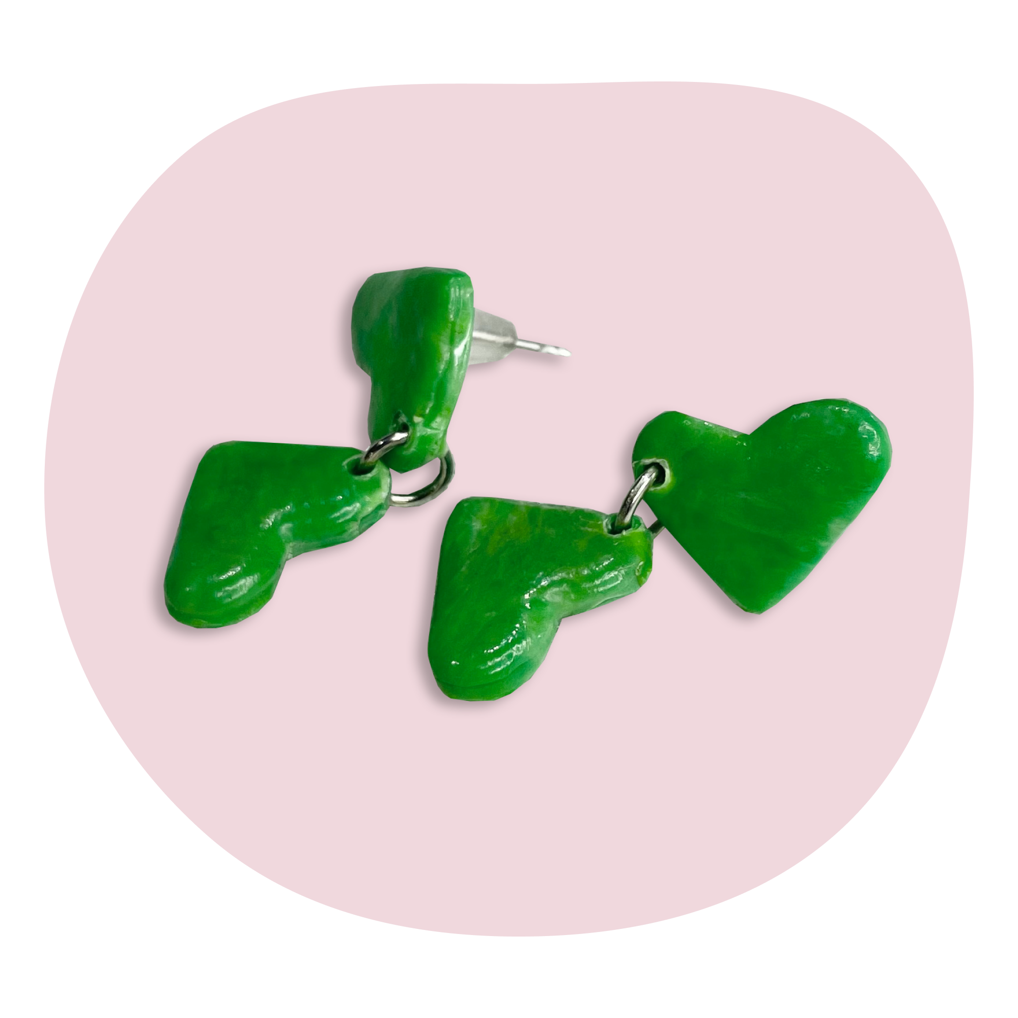 Сережки довгі з переробленого пластику. «Подвійні Сердечка». Зелені