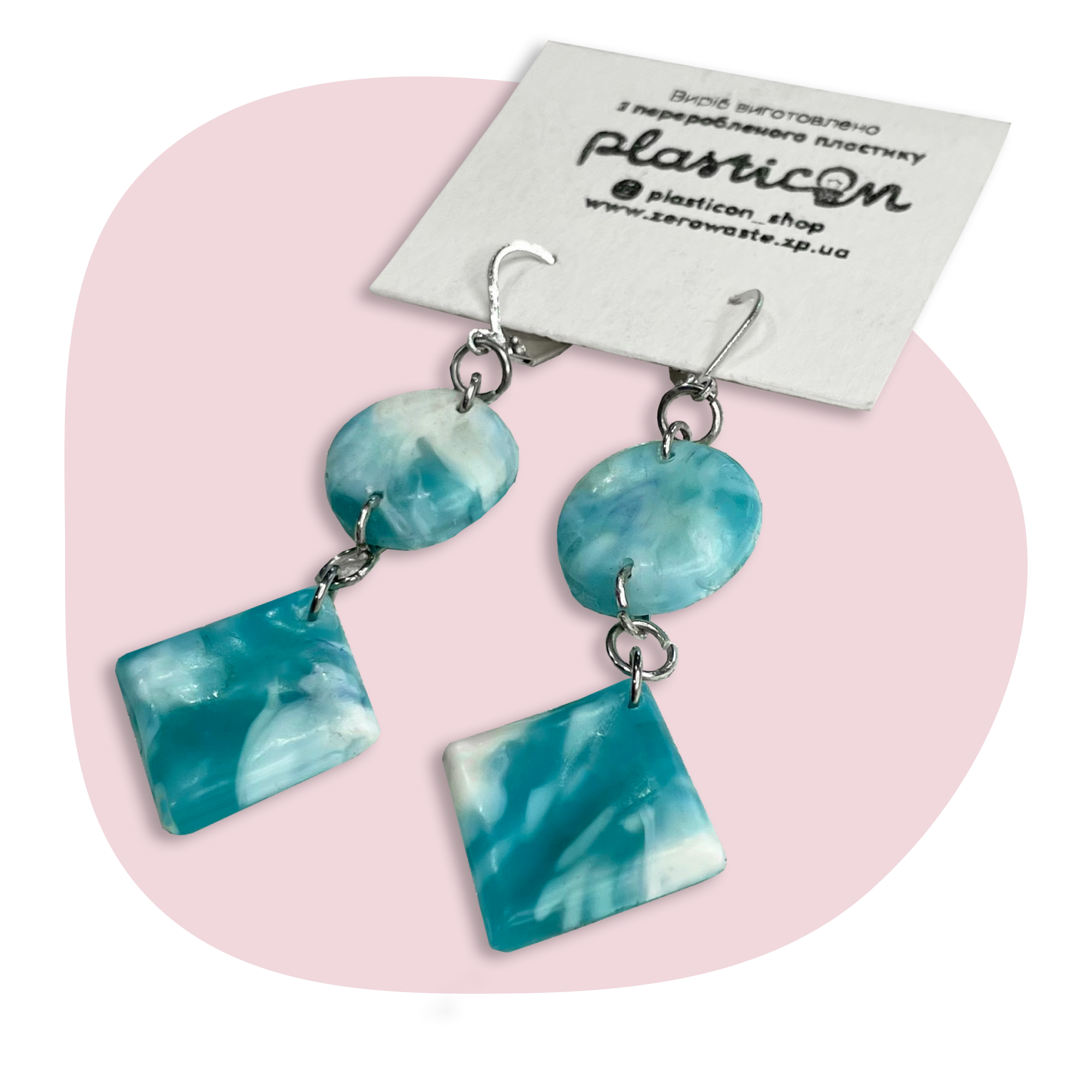 Сережки довгі з переробленого пластику. Бірюза